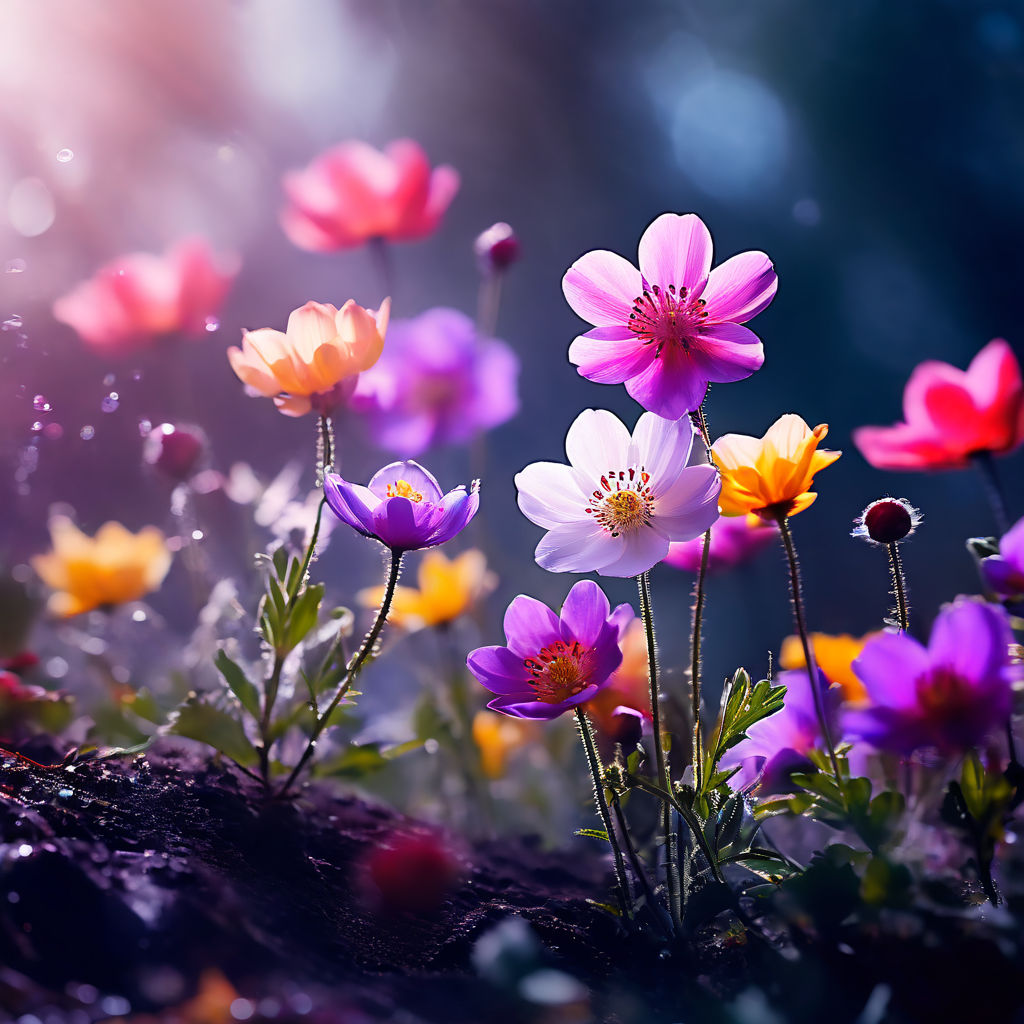 Bouquet of delicate spring flowers nestled in a vibrant meadow,...